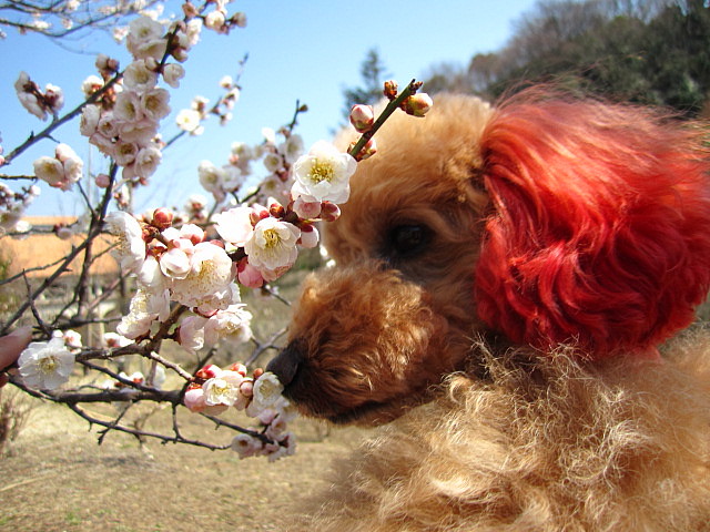 くっきーは片手でヒョイっと花の上で撮影