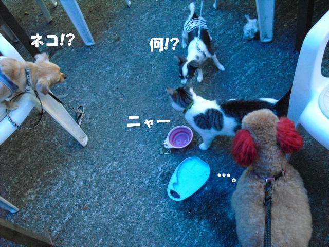 その猫ちゃん、むっくが近づけば迷惑そうなのに、