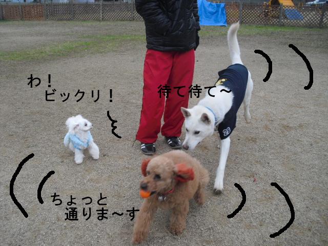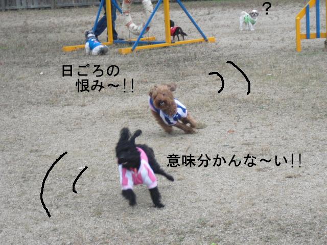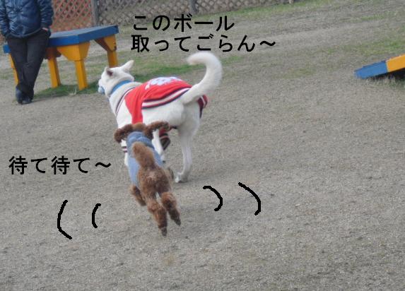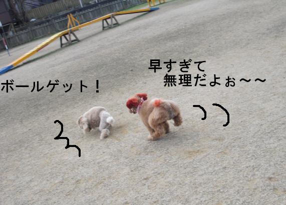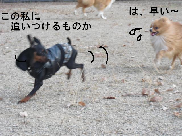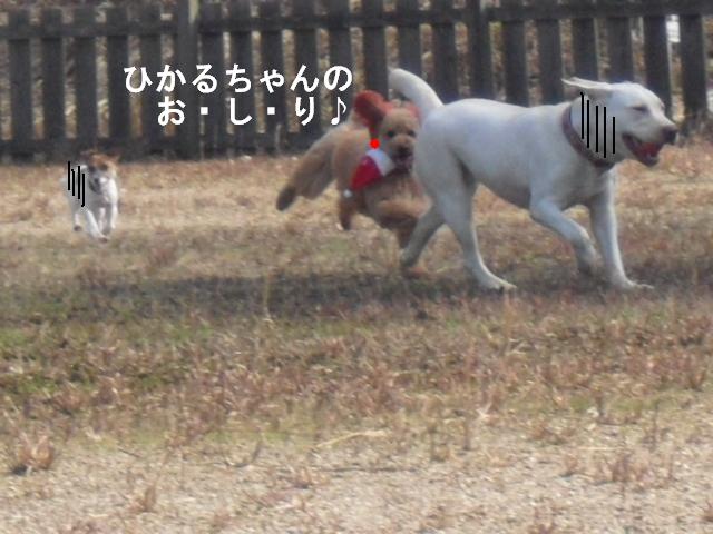 走るワンコたちのなかに なにやら デカイおけつのわんちゃんが ・・・ う~ りきちゃんにしか出来ない走りです バッチリィー