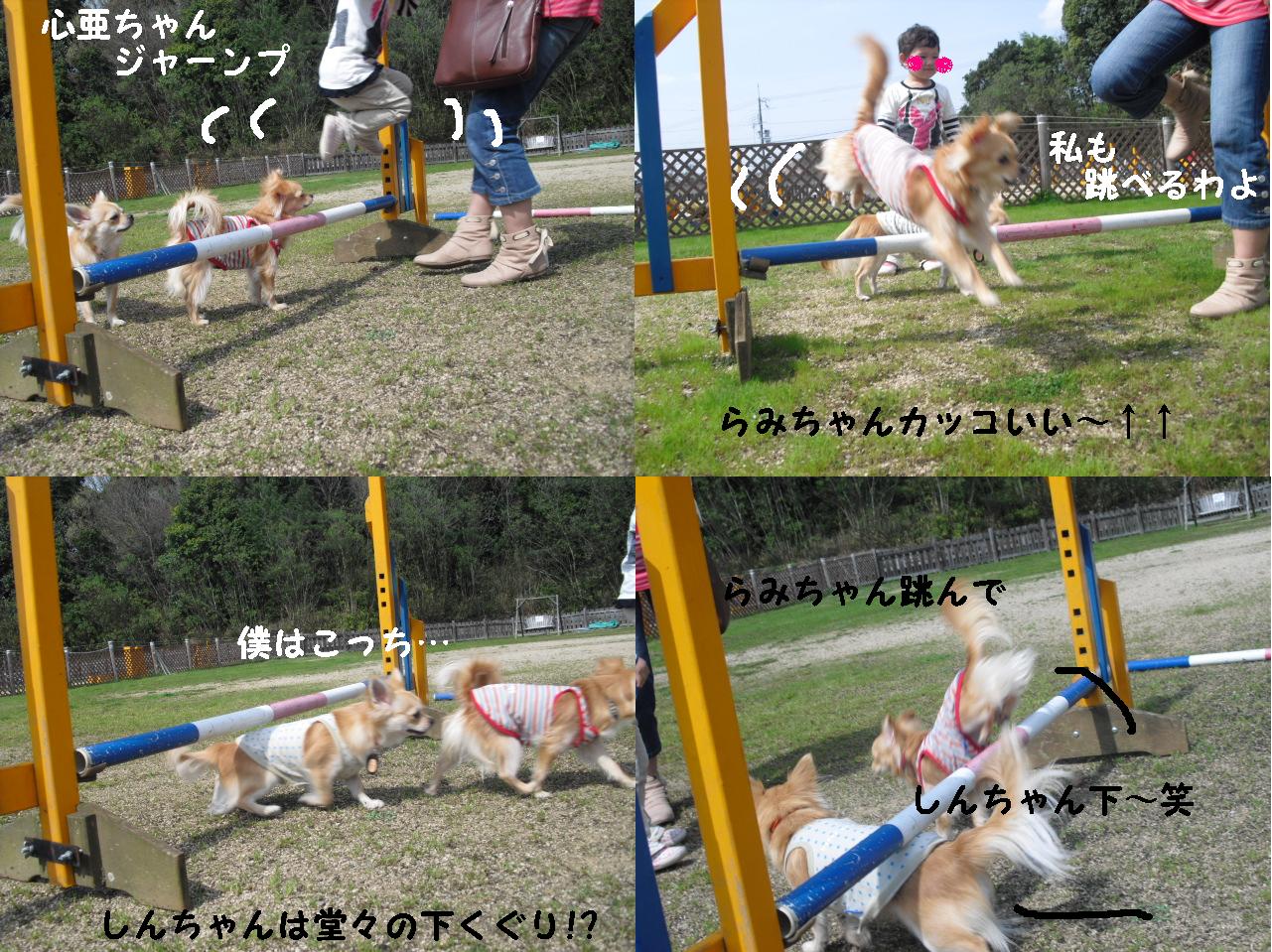 ハードルで 楽しく遊んだ三人でしたが 悪魔っ子 心亜のジャンプ
