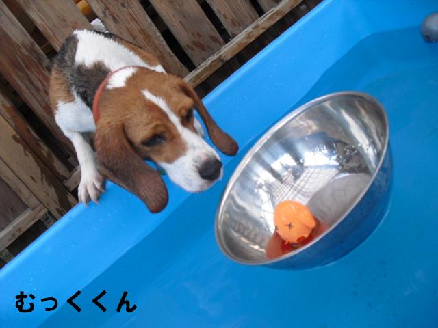 見ての通りむっくくんもプールに入り・・・
