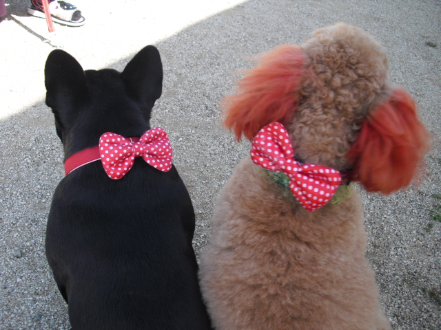 仲良く看板犬しちゃってます