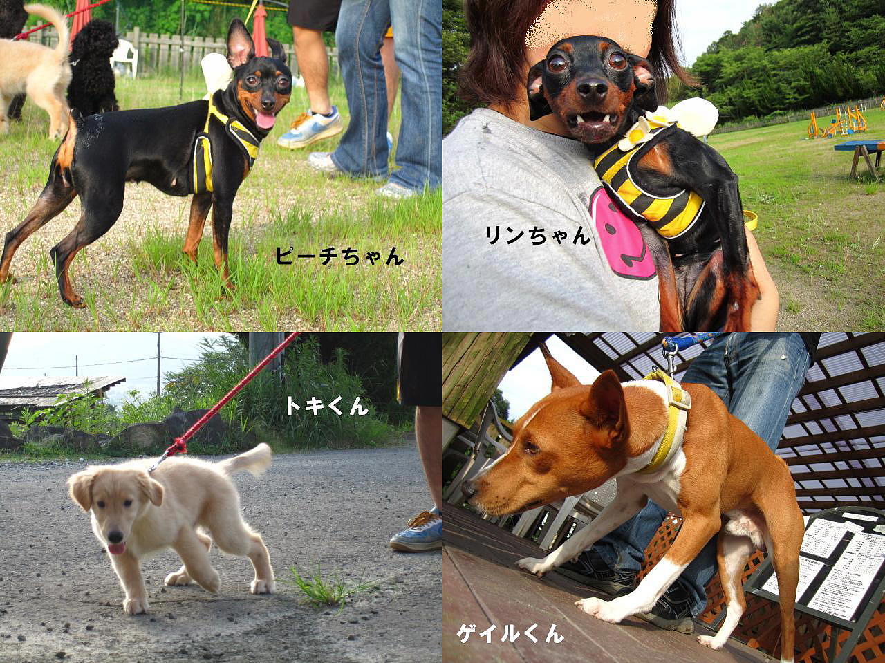 ミニチュアピンシャーのピーチちゃん&リンちゃん&ゴールデンのトキくん3ヶ月