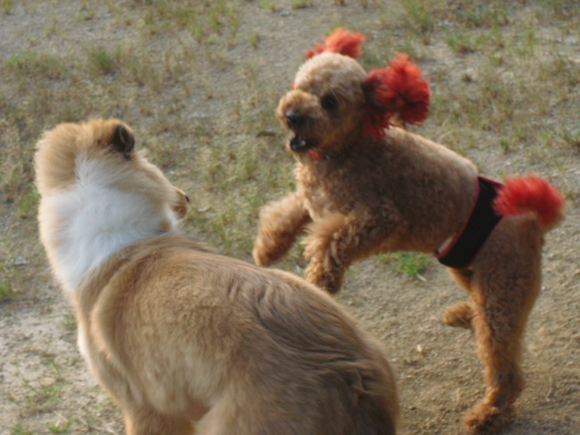 りきはクンも走り回って~ラッシーくんの気を引こうとしてますね(^^)