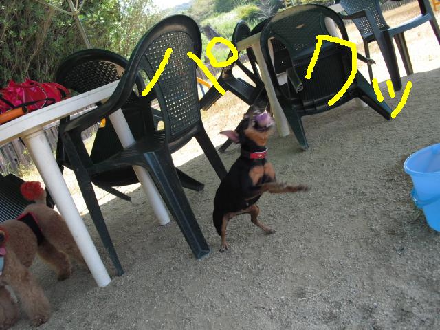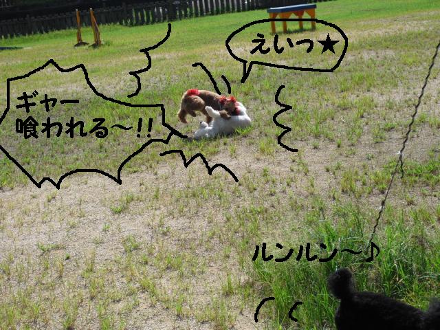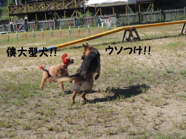 シェパードのアンリちゃんも飛び退いてます