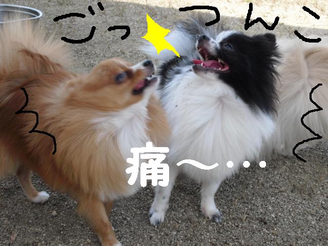 ポメ軍団のシロップくんとワッフルちゃんが正面衝突