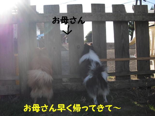 ラン外に出たお母さんの帰りを待つシロップくんとワッフルちゃん
