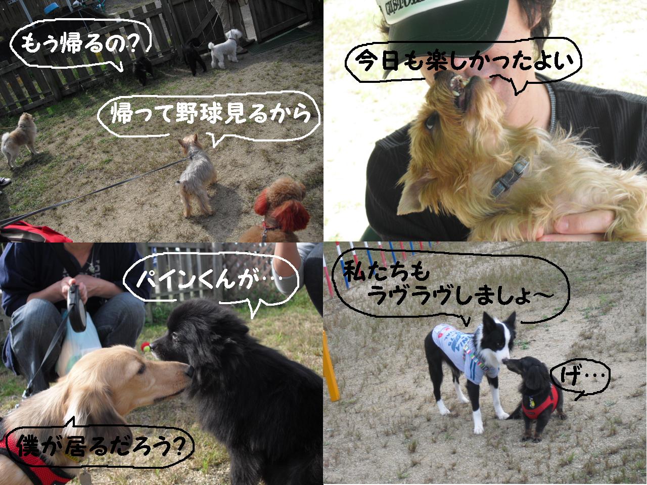 来週は仕事でいけないので、日曜に行けたら行きますね。晴れてほしいです。 かわいいワンちゃんが多い中で 大吉はわんぱくでいつもすみません。りきは君とりきままがいてるドッグランが一番すきみたいです。またあいてしてあげてね。