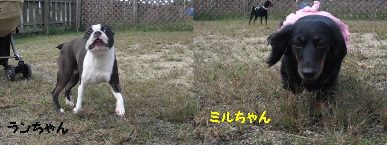 ボストンテリアのランちゃん&ダックスのミルちゃん