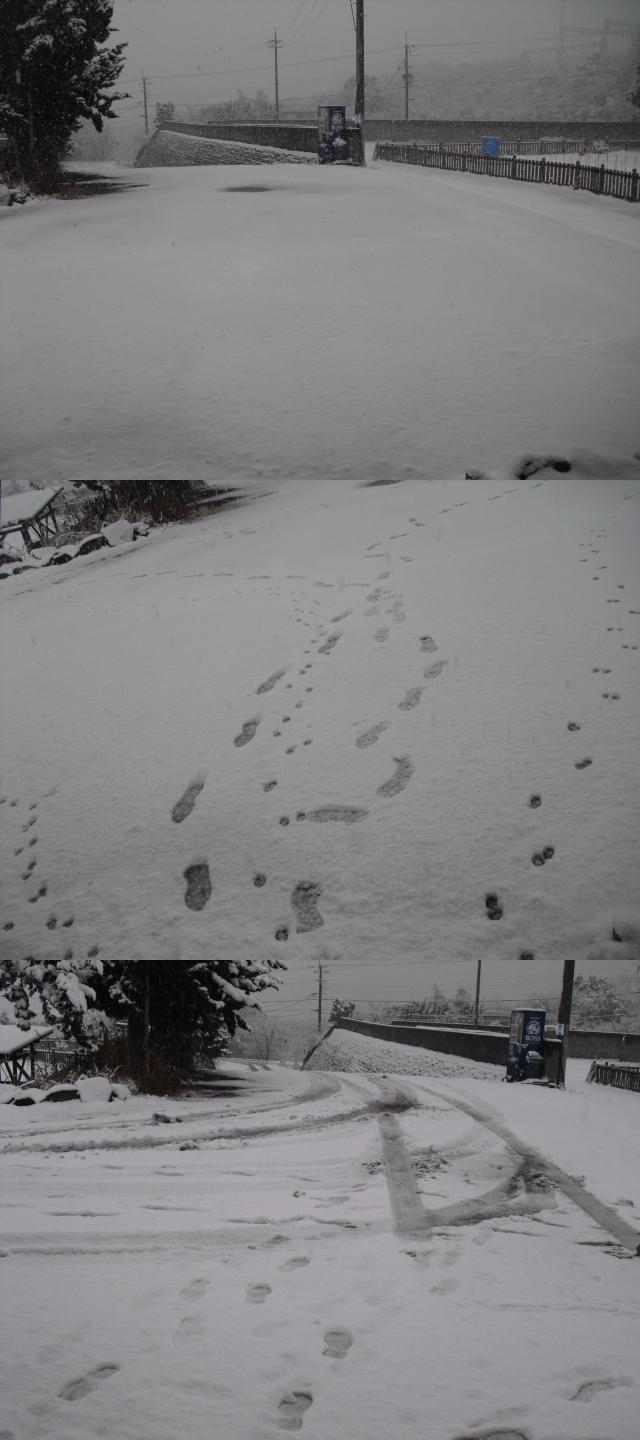 今回は道路もランも5cmぐらい積もったかな
