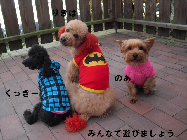 この日は寒かったのでみんなお洋服着て、くっきーは2枚も着せました
