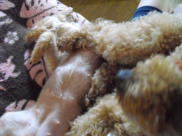 写真の奥ではラブが冷めた目で見ております