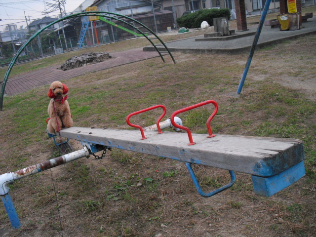 アジリティのシーソーと違うのでへっぴり腰で登って固まったりきは・・・笑