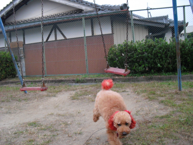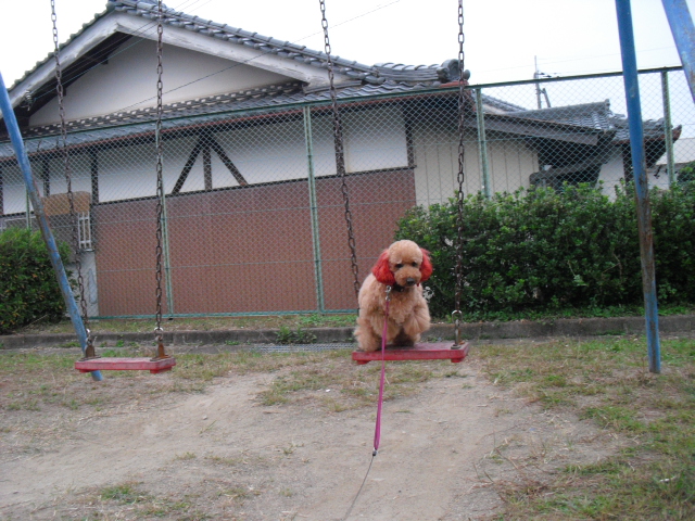今度はブランコに…私が乗せました