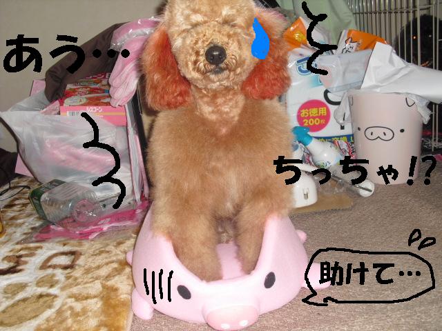 ちょっと前にくっきーに買ったブタのベッドが小さかった