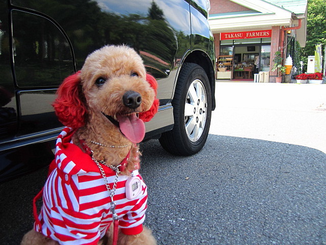 たかすファーマーズでは車で大暴れしたから外で待たされちゃったのよ・・・