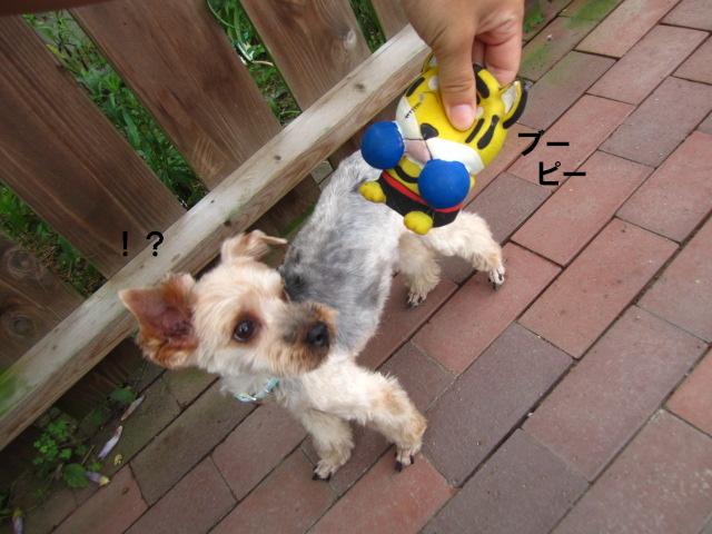 ただでさえこのオモチャが怖いのに、くっきーに突き飛ばされて哀れなり・・・