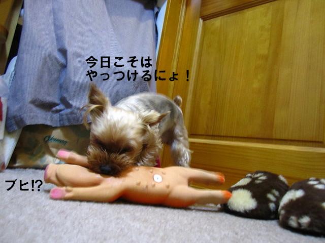 今までは怖がって近付くことも出来なかったブタのオモチャがあるんですが・・・