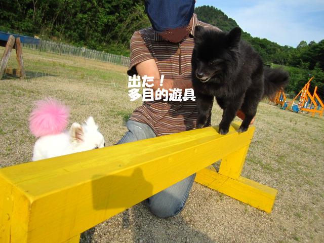 多目的遊具に乗せられ乗せてもらったり