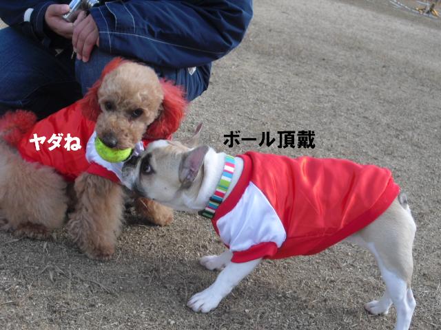 まだオチッコもしてないのにくっきーとのボール遊びに乱入