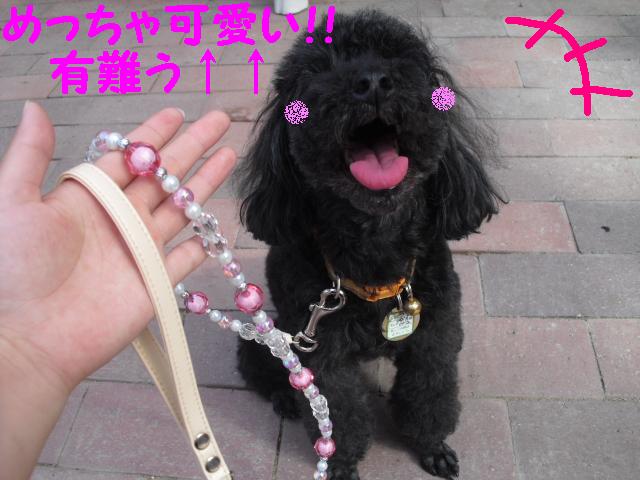でも、こんなかわいいリードで散歩していたら