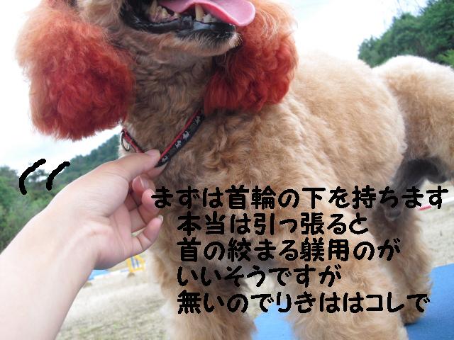 首輪をつかんで一気に下に引いて
