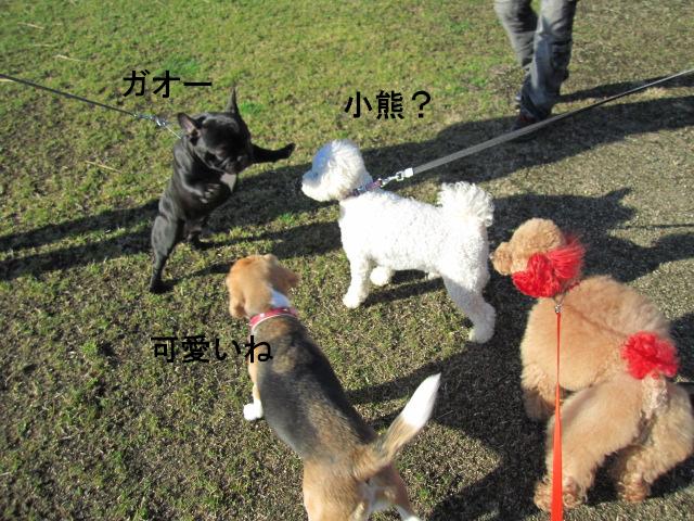 わんこに慣れてないアイちゃんなので気を付けてたのに、隙を見てくっきーが接近